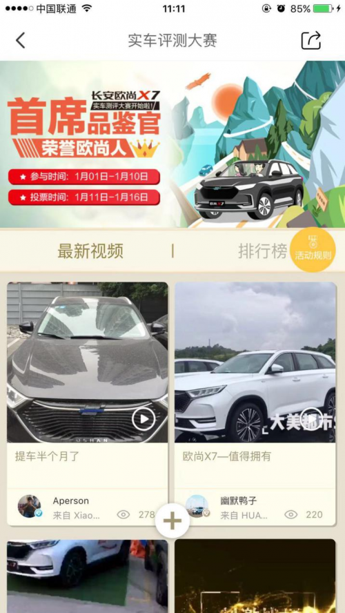 1月1日-10日在欧尚Style APP上线的“首席品鉴官·荣誉欧尚人”长安欧尚X7实车测评大赛已经上线了三天。在这三天内,不仅吸引了广大车友的关注,更是让大家在热情高涨中纷纷上传了自己的作品。究竟这个大赛有何魅力,竟然让一众老司机摩拳擦掌,让我们来一探究竟!